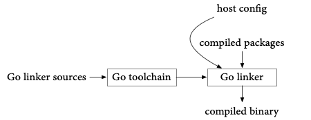 Go 1.10 introduced a content-aware build cache that decides whether targets are up-to-date based on a fingerprint of the build inputs instead of file modification times. Because the toolchain itself is one of those build inputs, and because Go is written in Go, the bootstrap process would only converge if the toolchain build on a single machine was reproducible. The overall toolchain build looks like this: